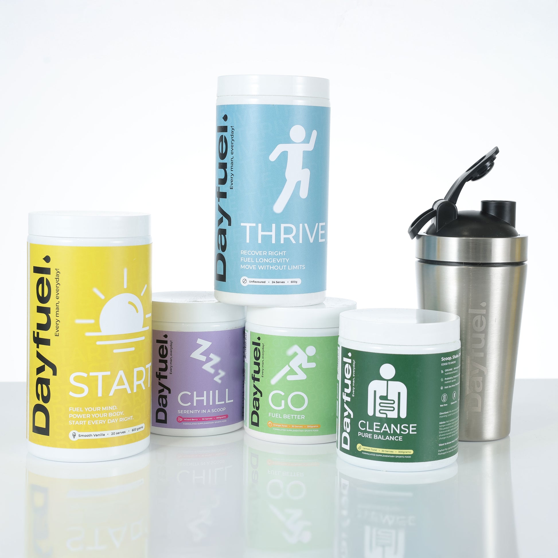 Dayfuel isn’t one pill or powder, it’s a system of purpose-driven supplements, each built to