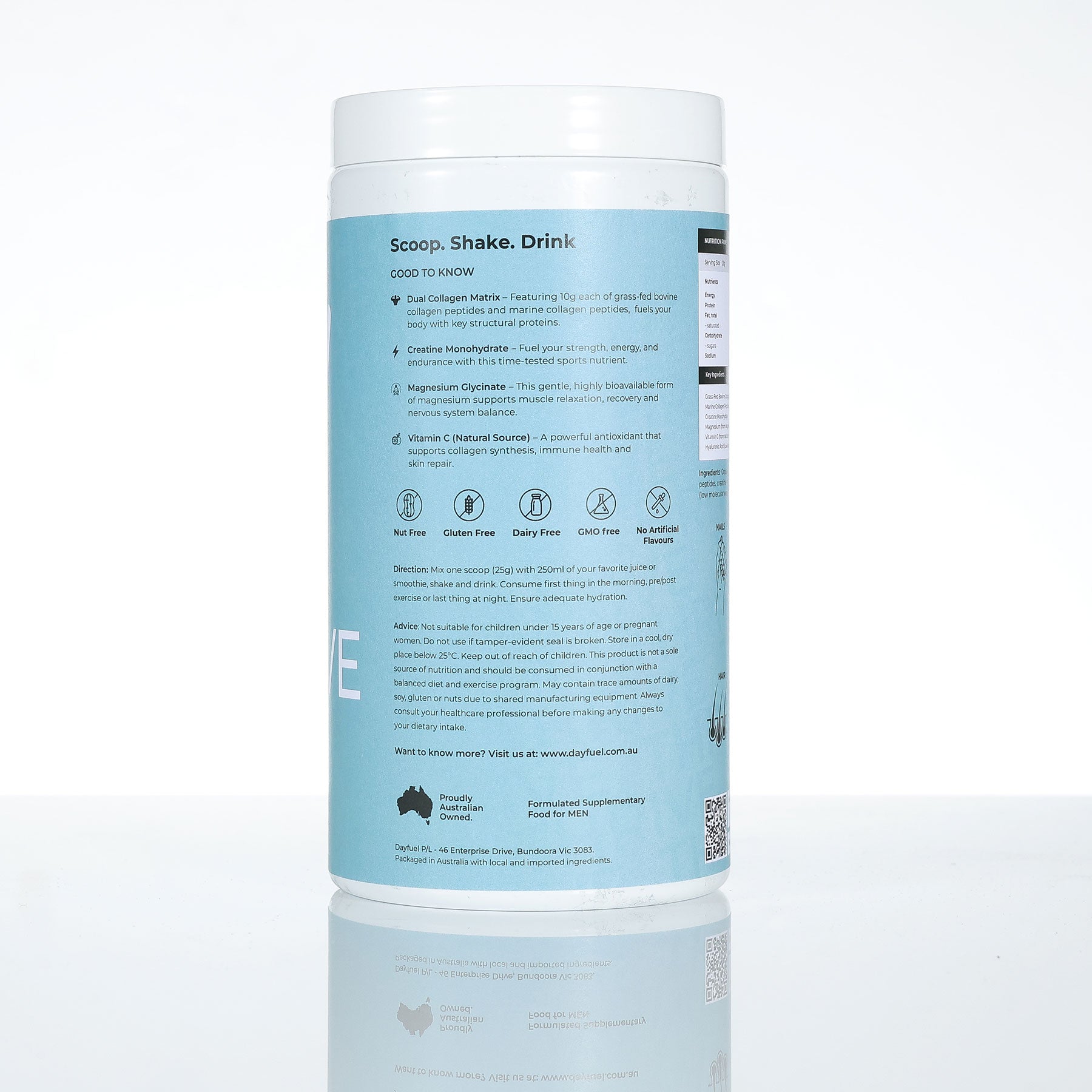 For active men, collagen plays a direct role in muscle recovery, joint integrity and overall performance. When paired with creatine monohydrate and magnesium glycinate, it supports strength, endurance and post-workout repair. It also assists in reducing inflammation and maintaining flexibility - essential whether you’re training, on the tools or just living full tilt.